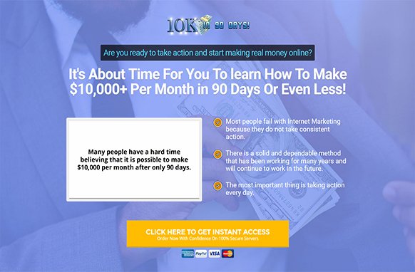 Are you ready to take action and start making real money online? It's About Time For You To Learn How To Make $10,000+ Per Month in 90 Days Or Even Less! Most people fail with Internet Marketing because they do not take consistent action. There is a solid and dependable method that has been working for many years and will continue to work in the future. The most important thing is taking action every day.