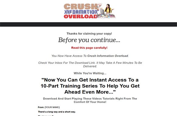 How To Finally Crush Information Overload, Avoid Overwhelm And Have a Clearer Mind To Move Forward. Information Overload Leads To a Decrease in Productivity... Now You Can Get Instant Access To a 10-Part Training Series To Help You Get Ahead Even More. Download And Start Playing These Videos Tutorials Right From The Comfort Of Your Home!